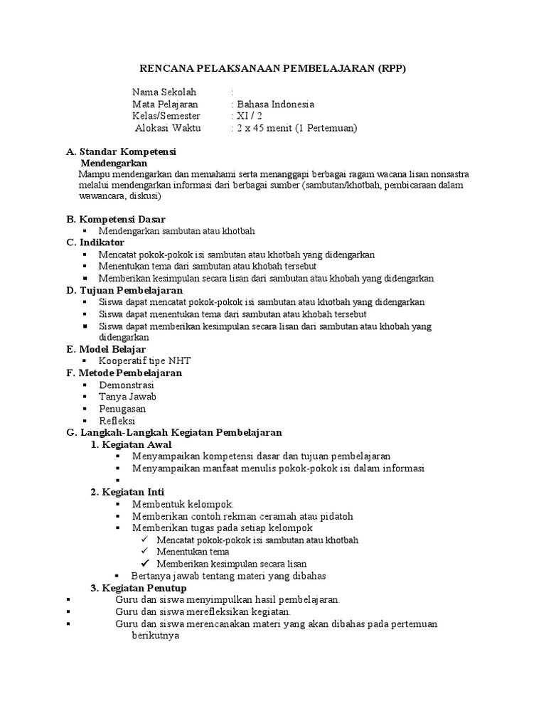 Rpp Bahasa Indonesia Sma Kelas Xi Semester 1 - intensivesip