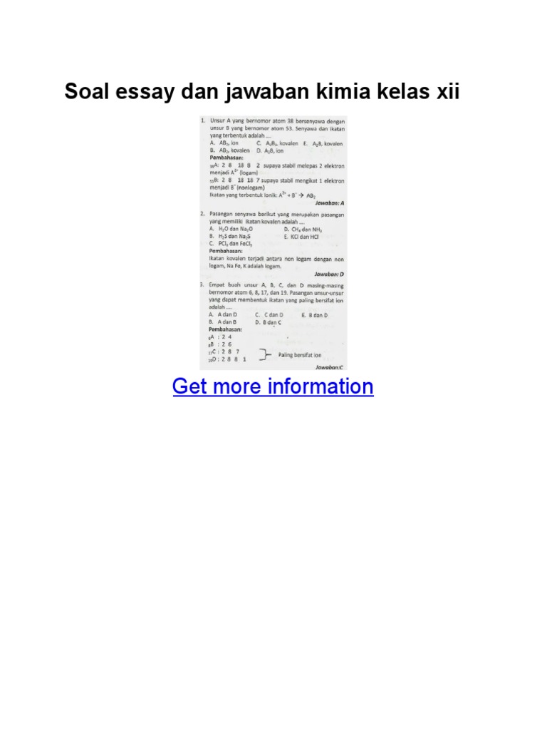 Contoh Soal Essay Kimia Kelas 10 Beserta Jawabannya - Guru Paud