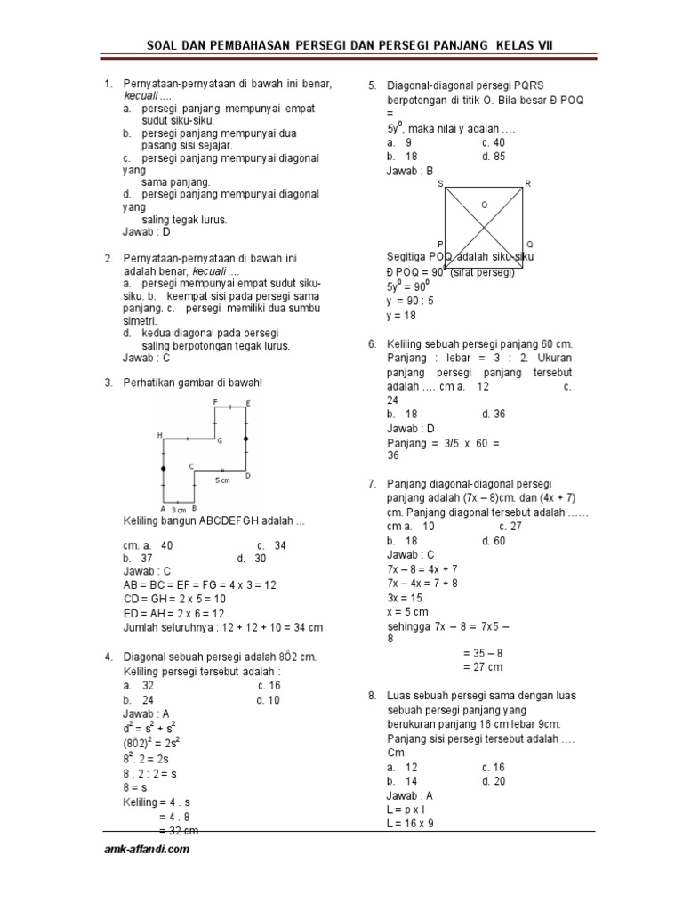 Soal Dan Pembahasan Persegi Dan Persegi Panjang