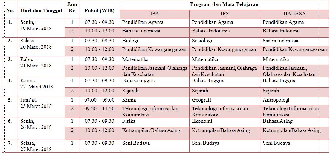 Jadwal USBN SMA Tahun 2018 - Blog Pak Pandani