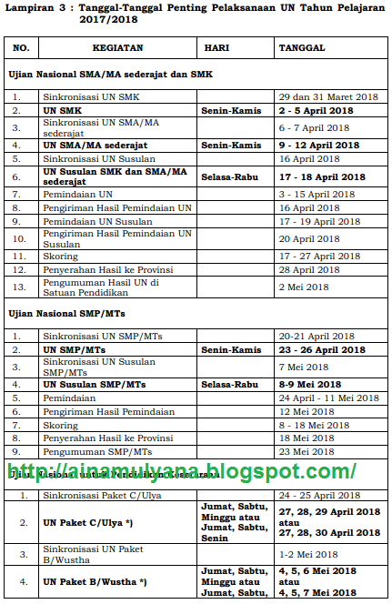 Jadwal UN 2018 dan USBN 2018 untuk SMP SMA dan SMK - Info Kurikulum dan Perbukuan