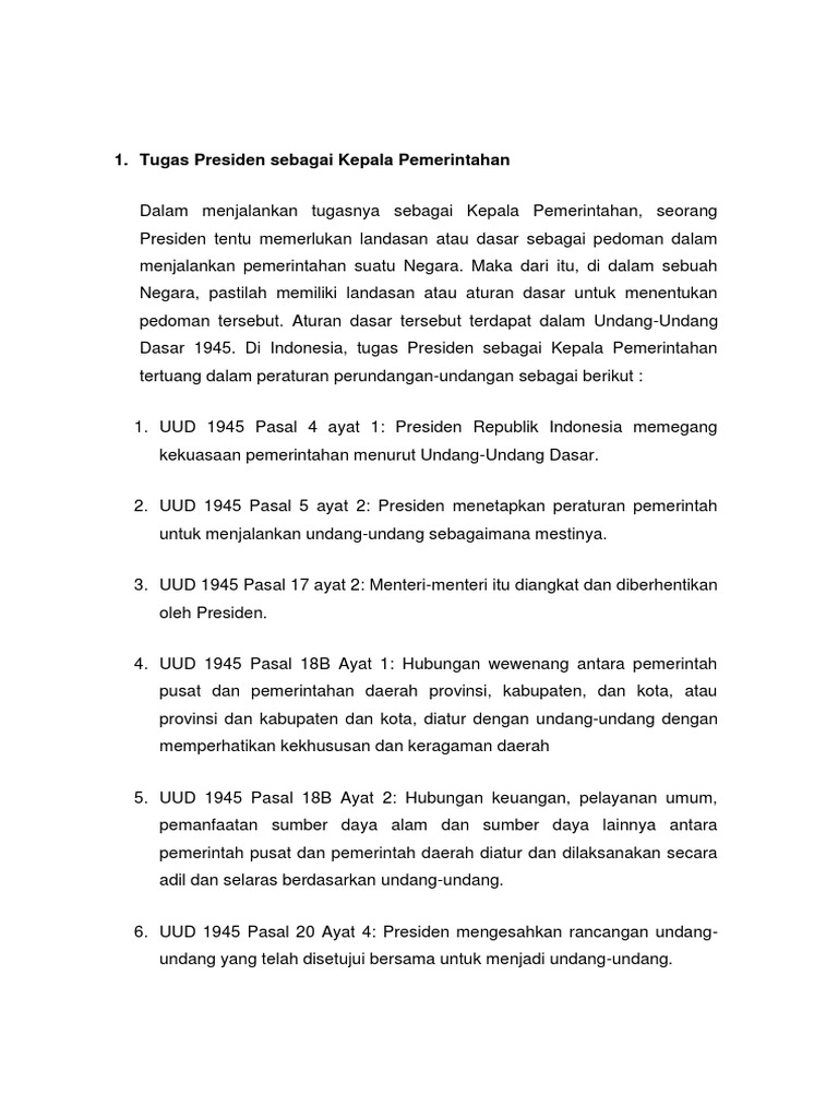 Tugas Presiden sebagai Kepala Negara dan Kepala Pemerintahan …