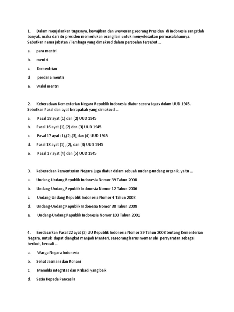 Berikut ini adalah bunyi UUD NRI thn 1945 pasal 17 ayat 4 …