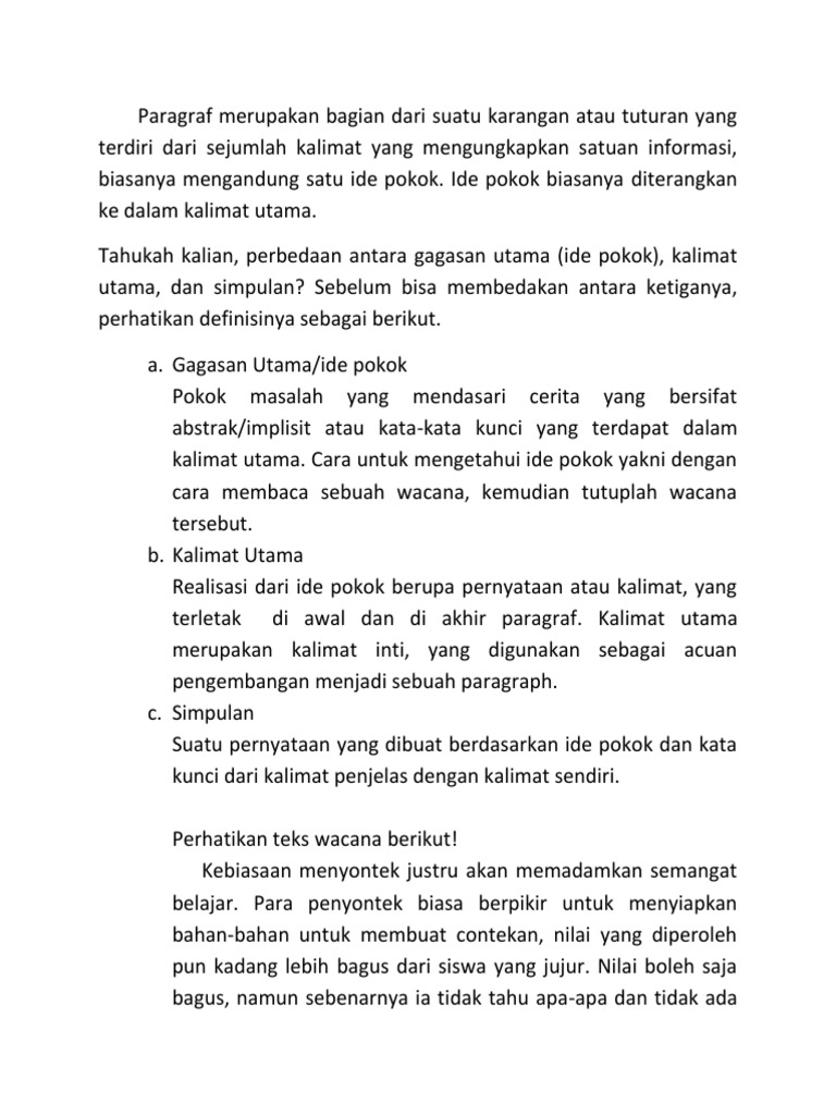Perbedaan Kalimat Utama Dengan Ide Pokok
