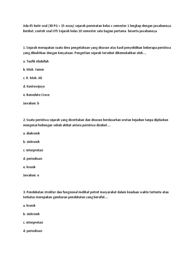 Contoh Soal Sejarah Indonesia Kelas 10 Semester 1 - Guru Paud