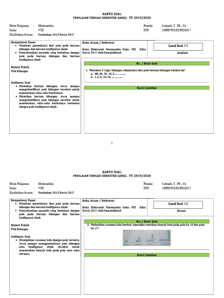 Soal Soal Pola Bilangan Kelas 8 Kurikulum 2013